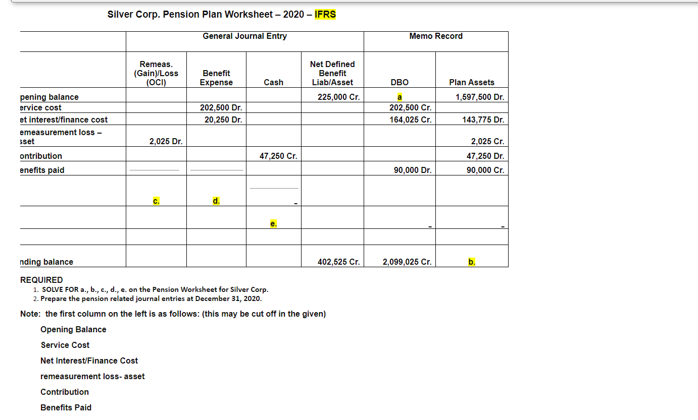 Silver Corp Pension Plan Worksheet 2020 Ifrs Chegg Com